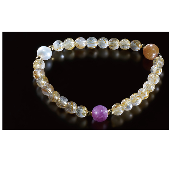 ●材質=ルビー/イエローサファイア/淡水パール/ゴールデンルチル(金色針水晶)