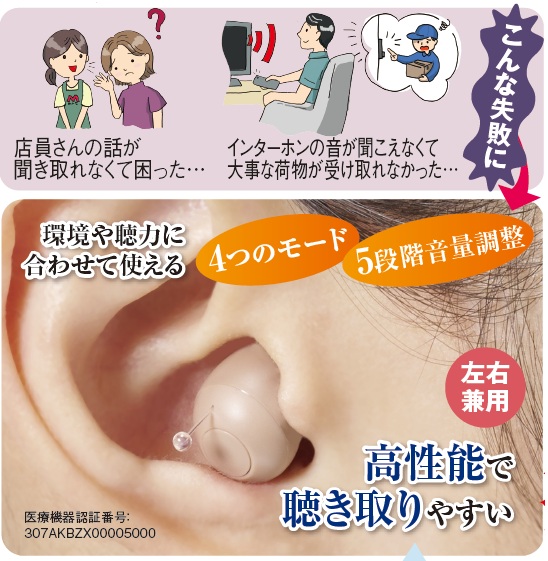 ●一般的名称:耳あな補聴器 販売名:充電式デジタル補聴器