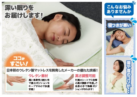 毎日の睡眠は、健康を維持するために欠かすことのできない大切な時間です。枕を使った眠りのポジションは、一人ひとりの体格の違いだけでなく、敷布団やベッドマットの硬さによってもかわります。ご使用中の枕は、あなたの体に合っていますか。あなたにピッタリの枕で心地よい睡眠をおとりください。1959年に日本で初めてウレタンマットレスを開発したメーカーがその加工技術で自信をもって送り出す低反発枕。柔軟性に優れたウレタン素材を使用しており、負担を吸収・分散。本体のほか2枚のシートを添え、高さ調整は3段階。一人ひとりにフィットする安定感が、深い眠りをお届けします。特殊加工によって枕本体に231個の空気穴を設けており、通気性を高め熱ごもりを改善しました。ラージサイズなので寝返りしても大丈夫。吸水速乾性に優れた外カバー付き。フィット感を追求し、素材から開発した安心の日本品質で、あなたの快適な睡眠をサポートします。