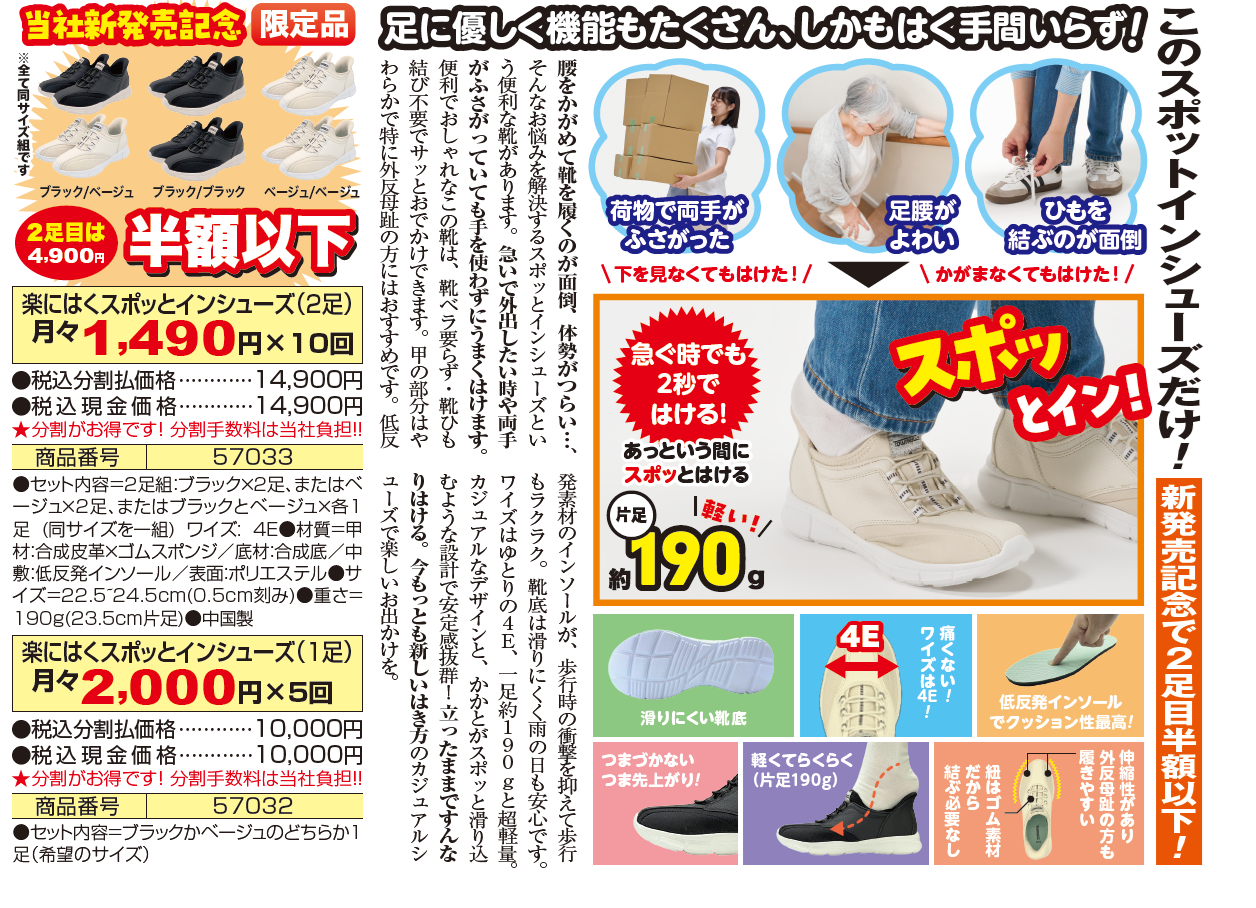 楽にはくスポッとインシューズ(1足) (57032-253 ~ 57032-456)